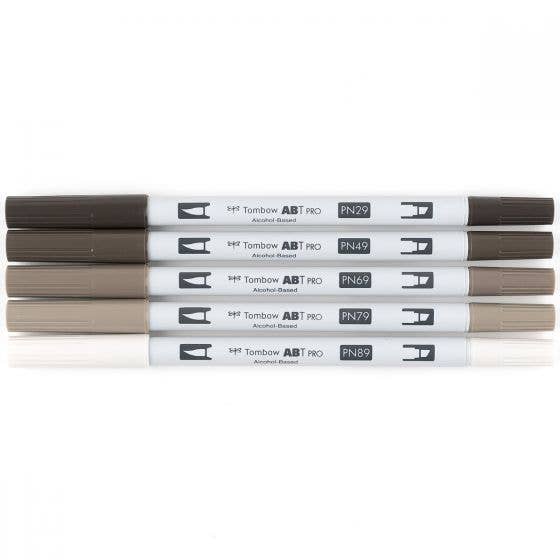 The Warm Grey Tones 5 piece assortment allows for various color gradients from light to dark. Colors include: PN89 Warm Gray 1, PN79 Warm Gray 2, PN69 Warm Gray 4, PN49 Warm Gray 8, PN29 Warm Gray 13